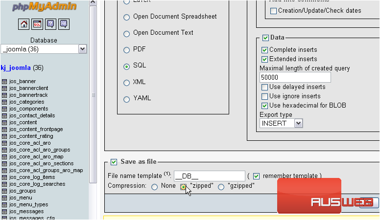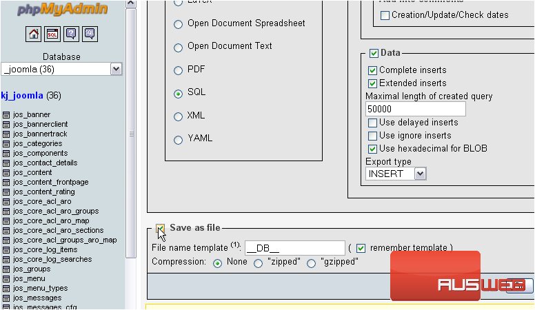 Success! You can now back up your Joomla database using phpMyAdmin whenever you want!