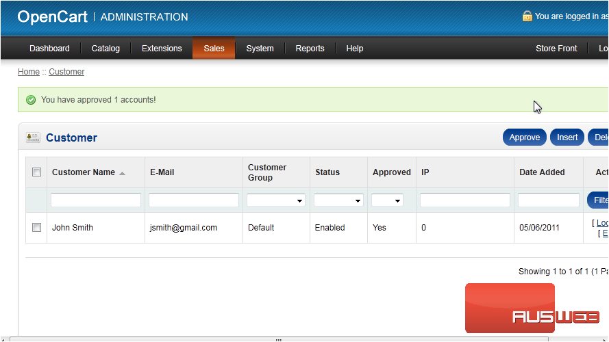Here is a list of all registered customers. We can see that this one hasn’t been approved.