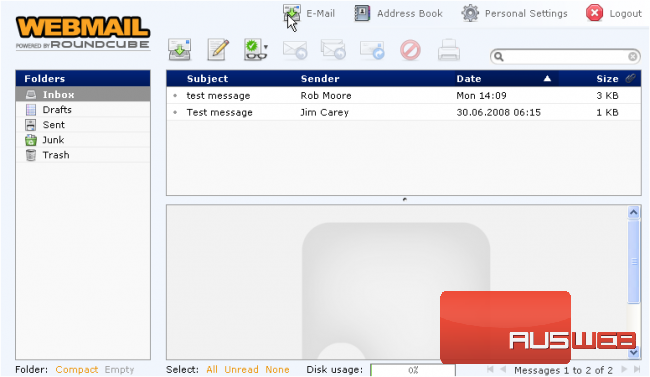 This tutorial assumes you’ve already logged in to RoundCube webmail