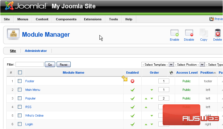 This tutorial will show you how to use the module manager in Joomla 1.5