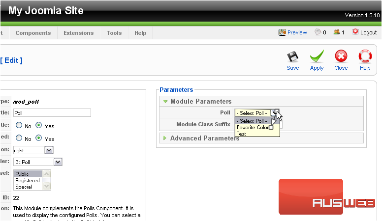 Now that the poll has been created, we need to setup a module that will display the poll on the front-end of our site