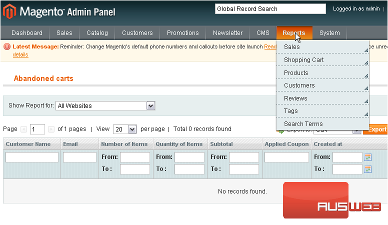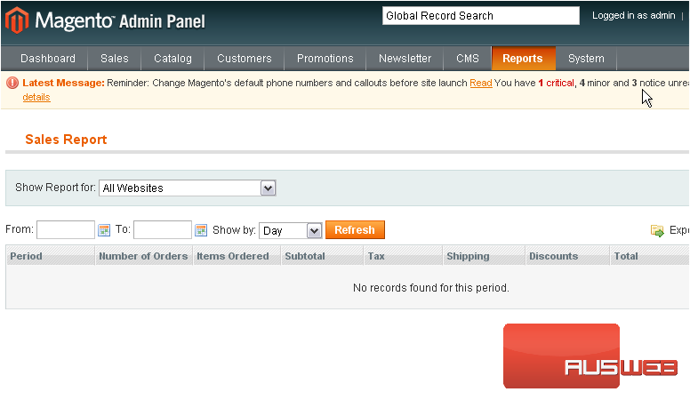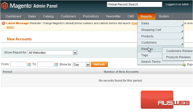 This is the end of the tutorial. You now know how to view reports in Magento Commerce